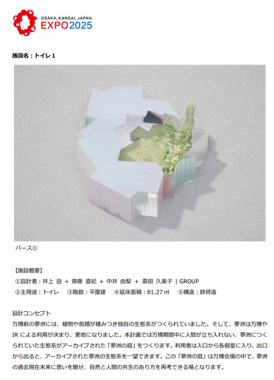 「トイレ1」も、コンセプトを伝えた上で「ややこしいけれど、夢洲の生態系を楽しめますよ」と打ち出せば、"トイレパビリオン"として受け入れられたかもしれない。ただその場合は、隣に普通のトイレを設置したほうが親切だろう。