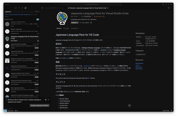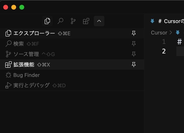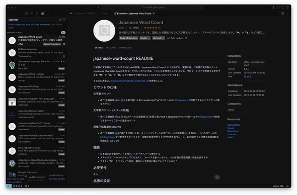 Cursorは基本的にはエディタなのだが、拡張機能をインストールすることでさまざまなカスタマイズが可能になっている。とはいえ、文章を書くだけならそれほど多くのカスタマイズは必要ない。