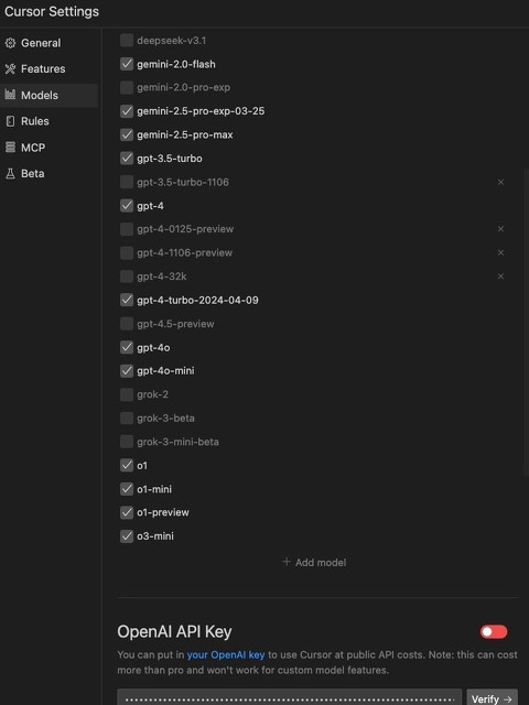ではこの中でAIをどう使うか、ということになるが、設定画面の「Models」のところには、すでにいくつかのAIが設定されているはずだ。
