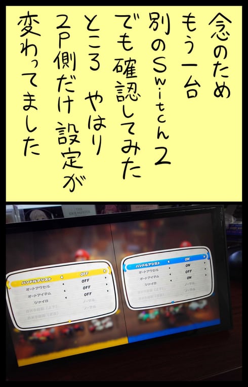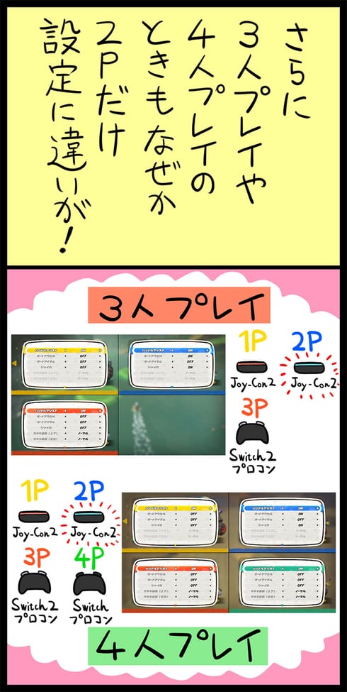 何かと話題の新型ゲーム機「Nintendo Switch 2」。「マリオカート ワールド」で「カートが勝手に動く」という問い合わせが多い理由が分かりました。「おすそわけプレイ」時のJoy-Con 2の設定です。