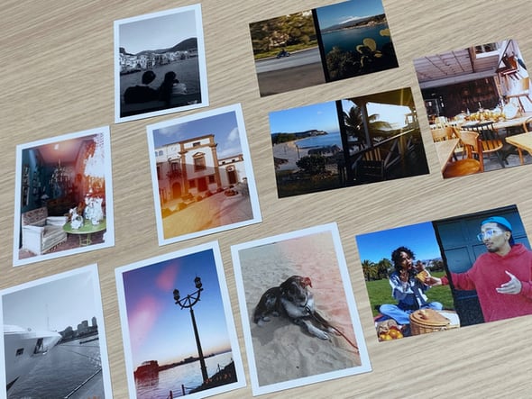 アプリの「フィルムカメラモード」の表示画面から、直接コンタクトシートのようなプリントが注文できるサービスがあるのだ。また、撮った写真を縁なしのパネルにしてくれるサービスもある。小口が黒や白に塗られているあたり、とても芸が細かい。