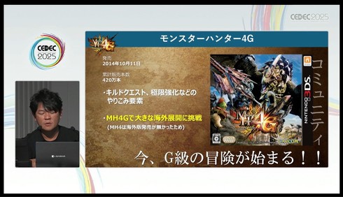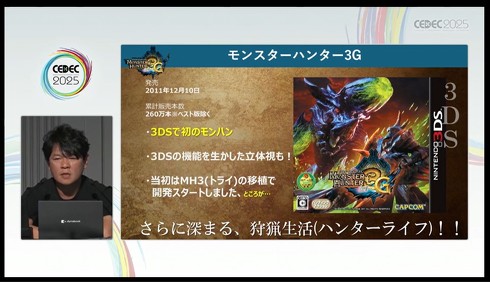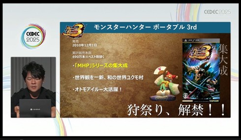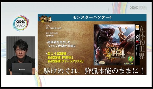 カプコンは7月24日、「CEDEC 2025」で、人気ゲームシリーズ「モンスターハンター」の歴史をひもとく、基調講演「『モンスターハンターシリーズ』 21年の継続と仕掛け」を行った。