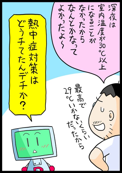 連載 2025年9月7日 真夏にエアコンが壊れた! 猛暑の3日間をなんとか生き抜いたマンガ家のサバイバル術とは?:サダタローのゆるっとマンガ劇場(6/7 ページ) 唐突ですが、ボクが住んでいるアパートのエアコンが故障しました。8月の猛暑日が続く中、ボクはやむなく昼と夜を逆転させた生活を送りました。 [サダタロー,ITmedia] PC用表示 関連情報 Share Tweet LINE Hatena 前のページへ | 次のページへ エアコン復活、でも…… Copyright © ITmedia, Inc. All Rights Reserved. 前のページへ | 次のページへ