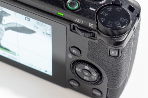かつてGRのパラメータ操作は右手グリップ部の前電子ダイヤルと背面の十字キー回りにあったロータリーダイヤル、そして背面右上にあるADJレバーで行う仕様になっていた。ADJレバーは一度押すとメニューが現れ操作項目を選べる。