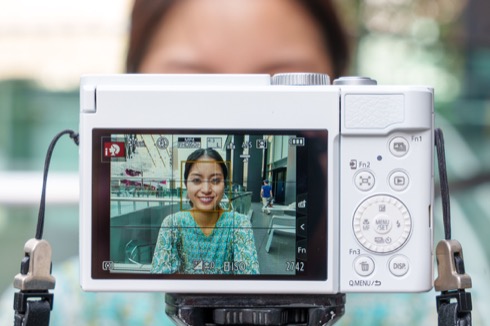 背面モニターはタッチパネル搭載で180度のチルト式。前モデルのTZ95ではファインダーを搭載していたが、それを排してチルト式モニターになった。ファインダーより自撮りを優先した仕様に変更されたのだ。