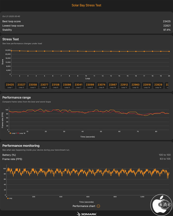 M4モデルは最高ループスコア「14333」、最低ループスコア「13060」でしたので約1.6倍性能が高いことになります。