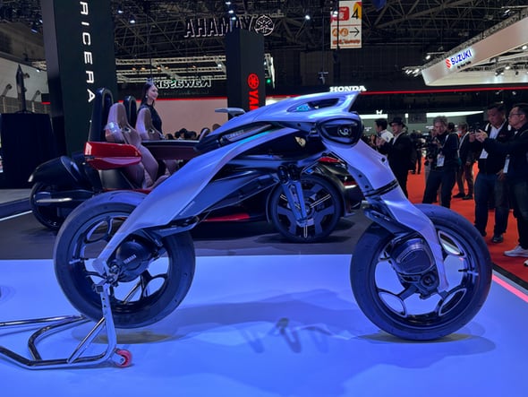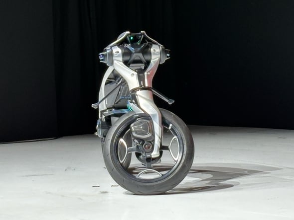 ヤマハ発動機が「Japan Mobility Show 2025」で始めて披露した「MOTOROiD:Λ(モトロイド・ラムダ)」は、前後に2つのタイヤこそあれど、ハンドルやシートがない異形のバイクだ。プレスカンファレンスで自立してみせたが、前輪を左右に小刻みに動かしてバランスをとる様子は、まるで生まれたての動物を見ているようだった。