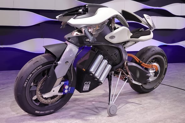 ヤマハ発動機の「MOTOROiD:Λ(モトロイド・ラムダ)」は、前後に2つのタイヤこそあれど、ハンドルやシートがない異形のバイクだ。