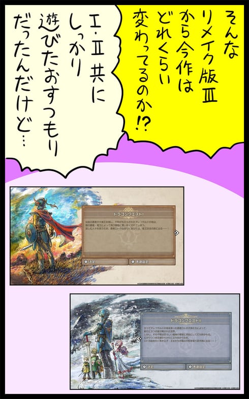 ニュース 2025年11月2日 「ドラクエ1」リメイクを一気にクリアしたマンガ家が、前作“3”にガッカリして手を出していないファンに伝えたいこと:サダタローのゆるっとマンガ劇場(2/7 ページ) 「ドラゴンクエストI&II」HD-2D版が10月30日に発売されました。前回のドラクエ3リメイクはファンから不満の声も多く上がっていた作品でしたが、今回はどうだったのでしょうか。 [サダタロー,ITmedia] PC用表示 関連情報 Share Tweet LINE Hatena 前のページへ | 次のページへ 基本はHD-2D版ドラクエ3と同じ Copyright © ITmedia, Inc. All Rights Reserved. 前のページへ | 次のページへ