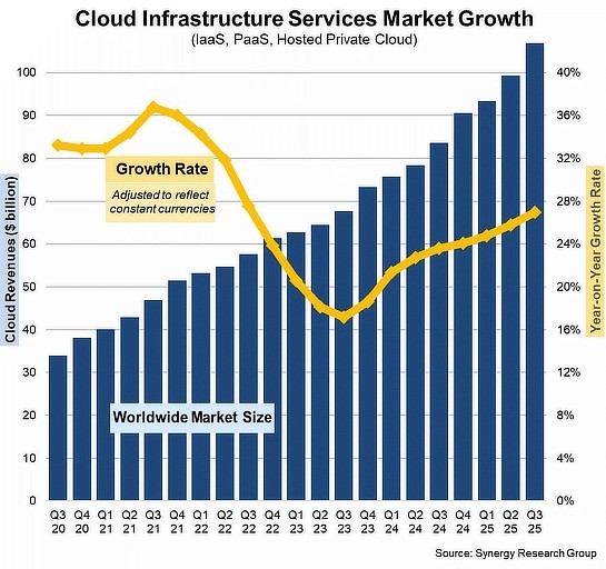 調査会社の米Synergy Research Groupは、グローバルにおける2025年第3四半期のクラウドインフラの市場状況について調査結果を発表しました。