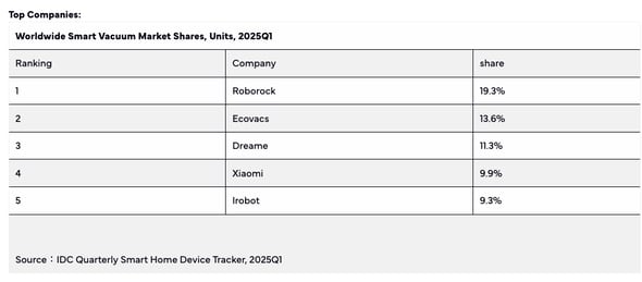 24年にはもう一つ、大きなできごとがあった。iRobotは四半期ごとのメーカーシェアナンバーワンの座を中国Roborock(ロボロック)に奪われたこと。さらにECOVACS(エコバックス)、Dreame(ドリーミー)、Xaomi(シャオミ)といった中国勢が続く。市場調査会社のIDCが6月に発表した25年第1四半期のロボット掃除機の世界メーカーシェアは上位4位までを中国勢が占め、iRobotは5位だった。