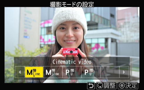 誰でもREDの画作りを楽しめるよう、撮影モードのU1に「シネマティックビデオ」が登録されており、それを使うと、あらかじめカスタムC1に登録されたピクチャーコントロール(この場合はルックというべきか)「CineBias_RED」になり、RED監修のシネマ調の画作りとなるのもZRならではだ。