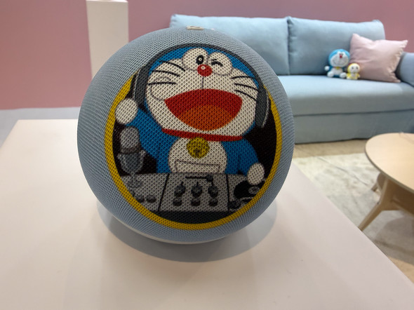 今回の発表会では、Echo Dotとドラえもんのコラボモデル「Echo Dot ドラえもんエディション」を発表。価格は1万1293円で、出荷は3月10日に開始する。通り抜けフープ越しに音楽を奏でるドラえもんをデザインした特別仕様で、藤子プロと小学館プロダクションの協力で制作した。Amazonは各国でオリジナルデザインのEcho Dotを展開しており、ドラえもんエディションは日本版の第1弾に当たる。