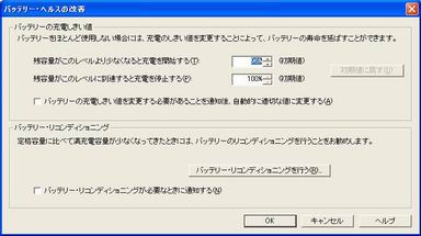 バッテリー関連のユニークなツールとして「バッテリー・ヘルスの改善」とシステム情報の「バッテリー情報」タグがある。バッテリー・ヘルスでは寿命を延ばすために充電開始のしきい値を設定して過充電過放電を防いだり、バッテリーのリフレッシュをおこなってメモリ効果を解消する機能があるThinkPad X40のパフォーマンスを、同じPentium M/1GHzと搭載する富士通のFMV BIBLO LOOX T70Gと比較してみよう。今回は、パフォーマンスを重視したCPU高速動作の状態に加えて、バッテリー時間を重視したCPU低速動作のパフォーマンスもグラフに加えている。バッテリー駆動利用が多いユーザーは、そちらのデータも参考にしてもらいたい。
