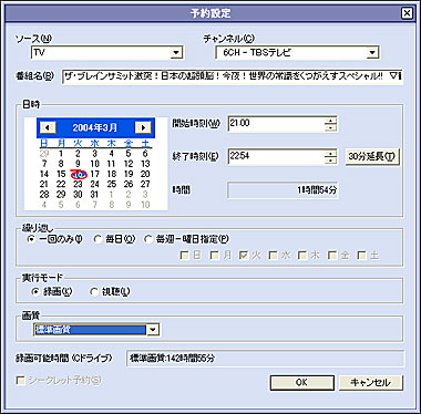 標準画質で録画した1時間番組(約1760Mバイト)を「AX連携ツール」のWMV形式標準プロファイル(320×240ピクセル、ビットレート160Kbps、フレームレート10fps)で変換したところ、13分12秒だった(CPUはHTテクノロジ対応Pentium4 3.2GHz)。ファイルサイズは約74Mバイトにまで縮小されるので、このままメモリーカードなどでPDAへ移動して視聴できる。