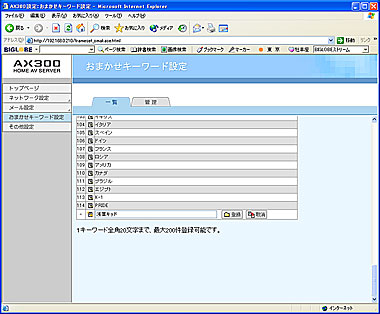 「AX設定」では、ブラウザを利用してAX300の各種設定が可能で、あとは「おまかせキーワード設定」のページで新たなキーワードを入力するだけ。これで、AX300からは、追加したキーワードをリモコン操作で選択できるようになる。好きな俳優の名前やオリジナルのキーワードを追加して、観たい番組をより確実に抽出できるのだ。