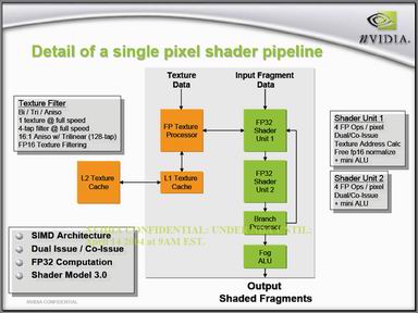 GeForce 6800 Ultraでは、各パイプラインにシェーダユニットが二つずつあり、