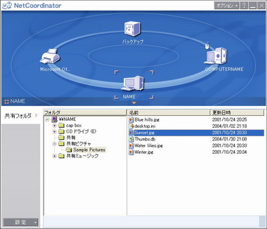 また、ネットワーク上のPCやプリンタの状態をビジュアルで管理できるソフト「ネットコーディネーター」では、データの共有だけでなく ネットワーク上の別のPCを起動することなども可能(「Wake up on LAN」機能対応の場合)。ネットワークを介して、スケジューリングによる別のPCへのバックアップや復元といった、さらに踏み込んだ使い方もできる。