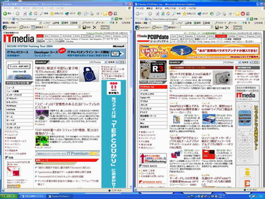このうち、最上位のUXGA対応タイプでは、画面への移りこみを抑えた低反射処理が施されたナチュラルファイン液晶を採用。蛍光灯などの照明が反射することなく見やすい画面で、長時間の利用でも目にやさしい設計だ。1600×1200ピクセルの高解像度表示では、ブラウザを2つ横に並べて表示することもできるなど、一覧性が高いので作業の効率も向上するだろう。