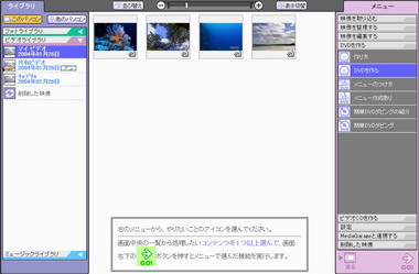 操作インタフェースもシンプルで、ビデオカメラなどの使用する機器や、DVDを作るといった用途をトップ画面で選択すると、あとは起動する画面に沿って作業を進められるので分かりやすい。