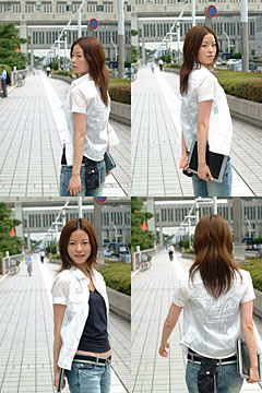 横尾理恵、26歳、モデル。所属はオスカープロモーションです。19歳のときからモデルをやってます。新宿は大学生のころよく来ました。今日はめちゃ暑いです。