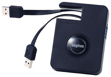 68(幅)×93(奥行き)×19(高さ)ミリ、96グラムとコンパクト・軽量で、USBケーブルも本体内に収納できる巻き取り式のため携帯に便利。ACアダプタも不要なので、場所を選ばずに使用できる。
