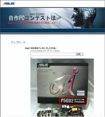 2ページは必要な画像のアップロードを行う。組み立て前に撮影したマザーボードの写真と、ベンチマークのスクリーンキャプチャだ。投稿できる画像サイズは200Kバイト以下とされているので、必要に応じてリサイズする以上で晴れて登録完了だ。