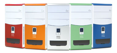 CPUはCeleron D 325(2.53GHz)またはPentium 4 2.40A/3E/3.20E/3.40E GHzの5種類から、HDDはUltra ATA/100またはSerial ATA対応ドライブから(RAIDも構成可能)、光学ドライブはCD-ROM、DVD-ROM & CD-R/RWコンボ、DVD-RAM/±R/RWスーパーマルチの3種類から、筐体カラーはスノーホワイト、エアーブルー、フォレストグリーン、トロピカルオレンジ、シャインレッドの5色から選べる。