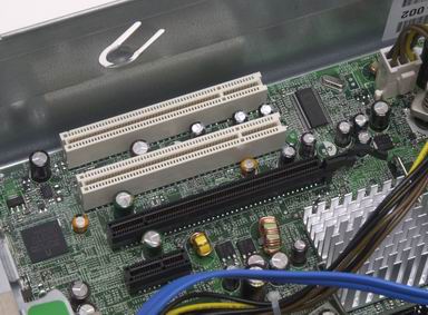 拡張スロットはPCI Express x16が一つとPCIが二つ(空きは一つ)。Intel 915G内蔵のIntel GMA 900のパフォーマンスに満足できないユーザーはPCI Express対応グラフィックスカードを拡張するようになるが、その場合もロープロファイルの製品を選ぶようになる(現状ではRADEON X300SEクラスのみだが)PCの録画では、インターネットの番組情報を利用した録画予約機能を利用するのが当たり前になっている。EX-VISION 1500TVを利用するためのコントロールソフト「INFO.TV Plus」では、「ADAMS EPG+」を利用できる。ADAMS EPG+は、インターネットや放送電波から番組情報のデータをダウンロードし、番組表を表示することができる。録画予約をしたい場合には、番組名をマウスでクリックするだけでOKだ。