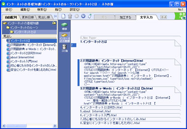 ネタの種で収集した情報は、一太郎2005に渡して編集・加工を施すことができるが、ネタの種自身のエディタ機能も強力である。