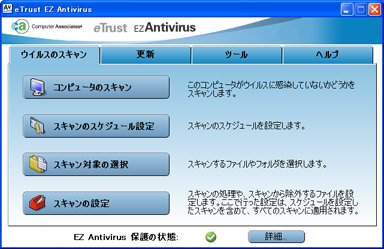 「eTrust アンチウイルス 2005」は、同社の企業向けクライアントソフト技術を活かした軽快な動作が売りだ。インストール時のHDD内サイズは約10Mバイト、使用メモリは128Mバイトと他社ソフトに比べコンパクトで、使用時に他ソフトの動作に影響することが少ないという。定義ファイルの更新前でも、不審な挙動を示すプログラムを検知して削除する「ヒューリスティック・スキャンも搭載した。