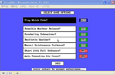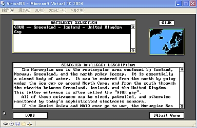 CONFIG.SYSでEMM386.EXEを設定し、マウスドライバを組み込んでめでたくHarpoonが動作する。起動したらBattlesetとシナリオを選んでプレイ開始、となる。ウォーゲームをするとき、純粋にゲームとして楽しむゲーマーも多いが、「書籍や映画で知った世界」を追体験、もしくは検証するためにプレイするゲーマーも意外と多い、と思う(え、これも私だけですか)。