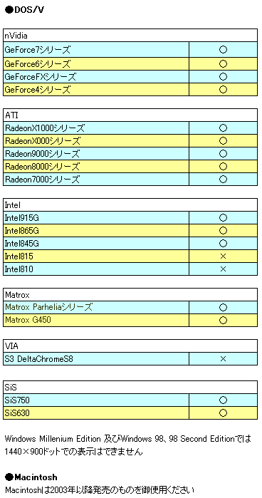出力1ワット×2のステレオスピーカーを前面に内蔵、インタフェースはDVI×1、アナログD-Sub×2の2系統を装備する。本体サイズは451(幅)×191(奥行き)×371(高さ)ミリ、重量は4.8キロ(スタンド含む)。なお、1440×900ドット表示には対応グラフィックスカード/チップセット内蔵グラフィックアクセラレータが必要となる。対応製品一覧はこちら。