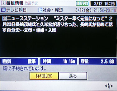 ちなみに、2時間番組を高画質モードで録画した場合の容量は約7.2Gバイト。大容量のHDDを搭載しているとはいえ、デジタル録画の場合は、画質によってはあっという間に容量が増えてしまいがちなので、重宝しそうな機能だ。