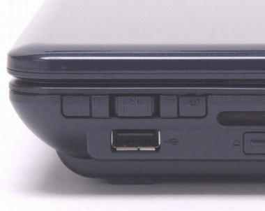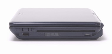 右側面には、QuickStartボタンをはじめ、CD/DVDの操作ボタン、音量つまみ、DVDスーパーマルチドライブなど、インスタント機能で使用する機器やボタンを装備。左側面は、SDメモリーカード、メモリースティック、xD-ピクチャーカード対応の「トリプルメモリースロット」やPCカードスロット(TypeII×1)、といった具合に用途別に分けて配備されている。