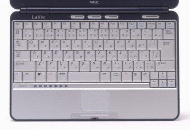 12.1型ワイドタイプのディスプレイが搭載されているため、コンパクトなボディでも、これだけのキーピッチが確保されているが、横長の分、パームレストやスライドパッドのスペースはやや狭く感じる部分もある。
