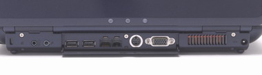 また、背面には、外部ディスプレイ、LAN、モデム、USB2.0×2などのほか、S映像出力、ヘッドフォン/光デジタルオーディオ出力(共用)、マイクなどのAV関連の入出力端子を配置しており、ヘッドフォン出力、マイク入力以外はコネクタカバー内に装備する。