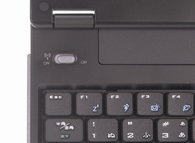 無線LAN機能も内蔵可能で、IEEE 802.11a/b/gのトリプルバンド無線LANを内蔵可能となっている。ちなみに、無線LAN機能は、キーボード左上に用意されているスライドスイッチを利用して物理的にオン/オフの制御ができる。バッテリー駆動時の電力消費を考えると、うれしい仕様だ。
