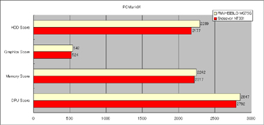 もちろん、バッテリー駆動時間を重視する場合には、消費電力の大きい通常電圧版Pentium Mの採用はマイナスポイントとなるが、携帯性とマシンパワーの双方を高いレベルで実現するという意味では、逆に大きな利点となる。事実、Dothanコア採用の最新Pentium Mを搭載することで、B5ファイルサイズノートながら、A4ノートに匹敵するパワーを実現できるわけで、この点がEndeavor NT331の大きな魅力というわけだ。
