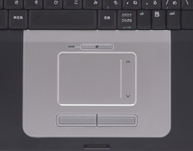 ポインティングデバイス部分はタッチパッドのほか、仕切りが設けられており、その右側が上下スクロールパッドとなっている。一般的なノートPCではタッチパッドの右側部分をスクロールに割り当てていることが多いが、このように別途スクロール用のスペースがあるのは便利だ。