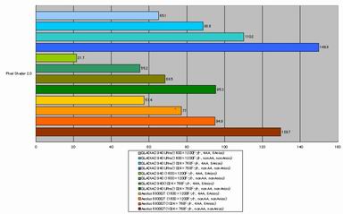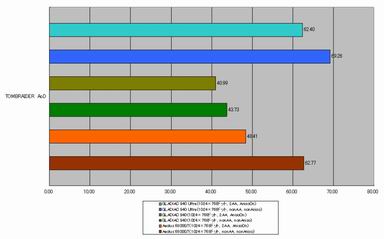 また、TOMBRAIDER AoDベンチマークでは、重負荷時でもパフォーマンスの落ち込みが少なかったGeForce 6800 Ultra/GeForce 6800と異なり、GeForce 6800 GTだけは大きく落ち込み傾向が見られた。誤差というには著しくほかのGPUと異なる結果になっている。今回の評価作業では、この原因を確定するまでには到らなかったが、Aeolus 6800 GTにだけ適用しているドライバのバージョンが異なることが、その原因の一つと考えることもできるかもしれない。
