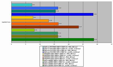 とはいえ、GeForce 6800ファミリーやGeForce 6600ファミリーのように、従来のGPUに対してすべてのテストで「一線を画する」ほどの、突き放したようなアドバンテージが示せていないことに注意したい。この傾向が顕著なのは3DMark03のGT4やAquaMark3だ。