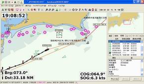 視界外の本船もAISで捕捉されればその位置にシンボルが表示される。表示されるだけでなく、一緒に送信されてくる「行き先」の情報から「紀伊半島東岸を北上している本船の行き先は名古屋港だから、そのまま伊良湖水道に突っ込むな」というような予測までできてしまう。さらにマーチスから送られる気象情報や海上交通情報まで表示されるのだ。