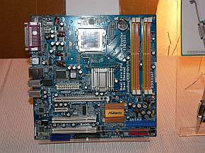 T-Series MotherboardsにはnForce 7050マザー「TF7050-M7」も用意されている。TF7050-M7は“LGA775を搭載してインテルのCPUに対応”、クアッドコアCPUもサポートする。メモリはDDR2-800ASRockは、ユニークな仕様をもつ製品でCOMPUTEX TAIPEIでは常に注目を集めるマザーボードベンダーとして知られる。今回もチップセットにIntel 945シリーズを搭載しながらFSB1333MHzに対応してしまう「ConRoe1333」シリーズが展示されている。一部日本で出荷が開始されているこのシリーズはIntel 945P、もしくはIntel 945Gマザーの「ConRoe 1333-eSATA2」にIntel 945GCマザーの「Conroe1333-GLAN」「ConRoe1333-D667 R1.0」、同じくIntel 945GC、または945Gマザーの「ConRoe1333-DVI/H R2.0」の4製品。