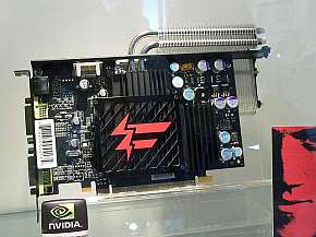 パワフルなスペックとユニークなパッケージで知られるXFXは、GeForce 8600GTのファンレスカード「GeForce 8600GT Professional」を披露した。ファンレスながらコアクロック620MHz、メモリクロック1.7GHzもさることながら、トップレベルゲーマーで知られる“Fatal1ty”をあしらったパッケージがやっぱりユニーク。ちなみにスタッフが手にするのはFatal1tyのサイン入り