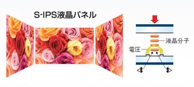 もともと、S-IPS液晶は斜めから見ても表示内容が確認できる広い視野角を実現するほか、見る角度によって輝度や色調の変化、コントラストの低下が少なく、デザイナーやプロカメラマンなどから高い評価を得ている液晶パネルである。