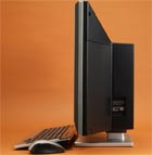 そして何より、20.1インチワイド液晶ディスプレイを搭載しながら、奥行きが198ミリというスリムなボディが光る。本体の台座部分にキーボードの収納スペースがあり、そこにキーボードを置くと奥行きは280ミリ程度、キーボード使用時でも約400ミリあれば作業を行えるため、何かと手狭になりがちな机上でも余裕を持って設置可能だ。同じサイズの液晶ディスプレイ単体に迫る省スペース性は、このクラスの液晶一体型PCでは群を抜く。