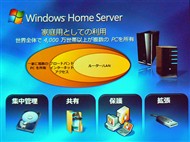 家庭から大企業までカバーするWindows Server製品(写真=左)。個人ユーザーがセキュアなネットワークを構築できる家庭用サーバOSのWindows Home Serverも紹介された(写真=中央)。Windows Home Server搭載製品は、今年後半に市場投入される見込みだ。Windows Server 2008は、管理性、セキュリティ、パフォーマンスなどが強化された(写真=右)。最後には、再び加治佐氏が登場。「さらなるCPUパフォーマンスの要求はあるが、これまで通りスケールアップはできないため、サーバだけでなく、デスクトップやモバイルもメニーコアCPUに向かっている」とし、次のソフトウェア開発のチャレンジはメニーコアCPUの性能を最大限に生かす「超並列処理と複雑さへの挑戦」だと述べた。