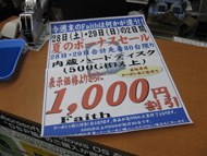 フェイス パーツ館の「夏のボーナスセール」を知らせるポスター(写真=左)。6月27日時点でのフェイス パーツ館のHDD価格表。土日に定価が下がるモデルがいくつかあるという(写真=中央)。TSUKUMO eX.もHDD関連で特価を行う。1人1台限定だ(写真=右)大容量HDDの値下がりが激しくなった3月には、500GバイトHDDの“ナナキュッパ戦争”が起きた。その後、値下がりペースが落ち着いていたが、一時的にせよ、ここに来てさらに大幅な特価競争が行われることになったわけだ。