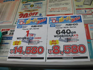 ほかにも、T-ZONE.PC DIY SHOPは土日各日70台限定で、日立の500GバイトHDD「Deskstar P7K500 HDP725050GLA360」を6980円で販売。TSUKUMO eX.も、ウェスタン・デジタルの1TバイトHDD「Caviar GP WD10EACS-D6B0」を30台限定1万4580円で、640Gバイトの「Caviar SE16 WD6400AAKS」を同じく30台限定8580円で放出する。